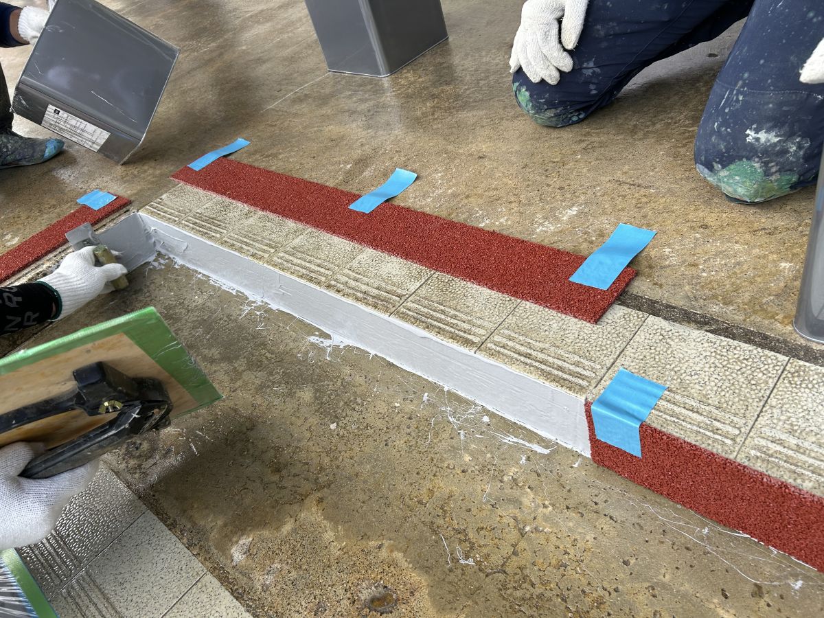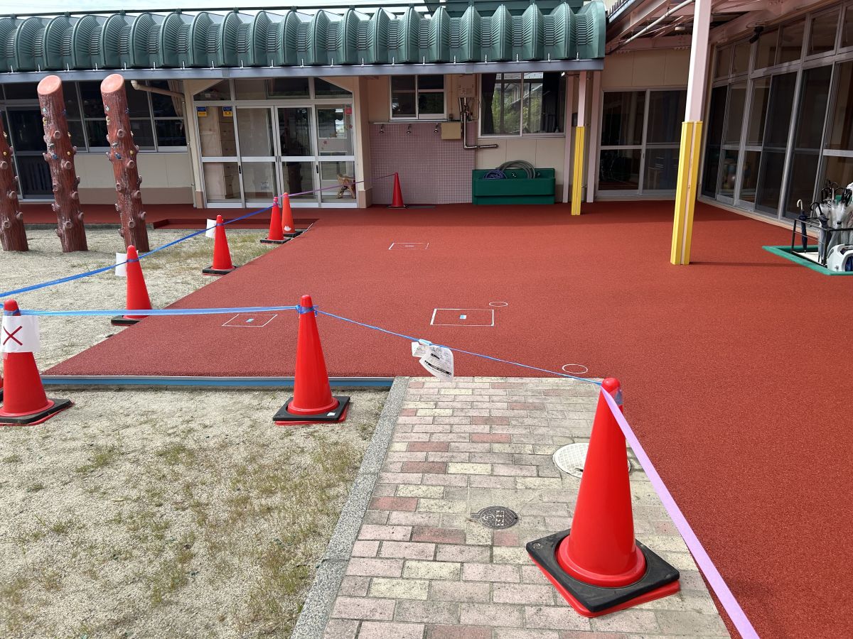 ゴムチップ舗装・施工例 投稿日: 2025年10月30日2025年11月10日 投稿者: NAGOMI 写真① 今回はゴムチップ舗装をご紹介します。 場所は新潟市秋葉区のこども園となります。 園庭に繋がるコンクリート土間テラスを 園児たちにも配慮してゴムチップ舗装しました(^^♪ より仕上がり強度を上げる為にライナックス機等を使用して施工面を研磨し(写真①) 施工面が捲れずらいように、端部にはカッター処理を施してあります。 一部立面も事前にゴムチップ形成し、 それを張り付けた後に つなぎ目を処理します。 写真② 写真③ 竣工前 写真④ 竣工後 出来る限りお客様に寄り添った施工を目指しております。 『こんな感じに施工可能かなぁ?』 『工期・施工時間に制限があるけど大丈夫かなぁ?』 お気軽にご相談・お問い合わせ、お待ちしております。 ゴムチップ舗装 ゴムチップ舗装