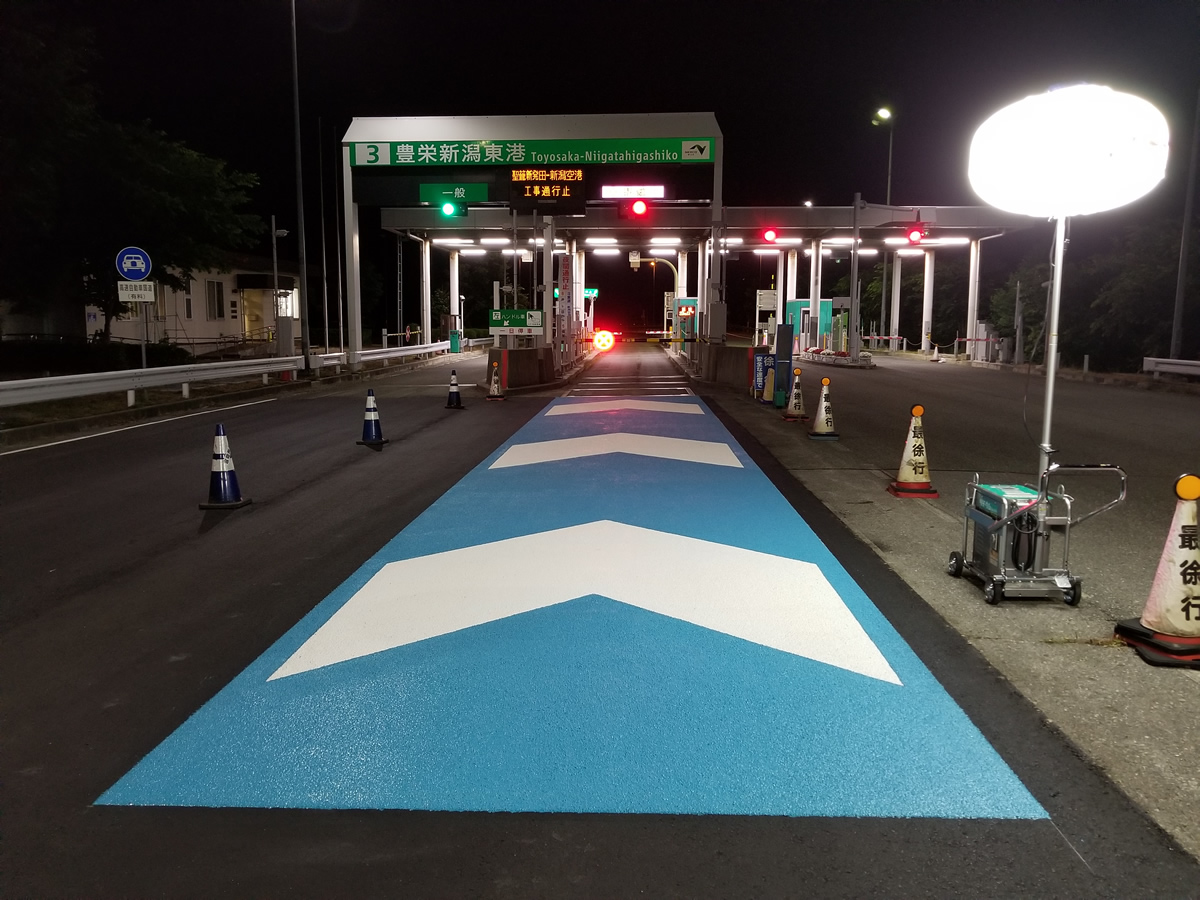 アスファルト舗装面やコンクリート舗装面上にバインダーを薄く均一に塗布し、その上に耐摩耗性の硬質骨材を散布して路面に固着させる工法です。